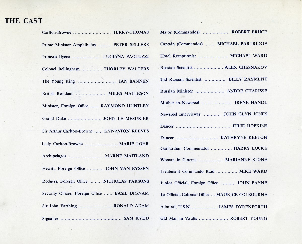 Terry-Thomas, Peter Sellers, Luciana Paluzzi, Ian Bannen, Thorley Walters, Raymond Huntley, Miles Malleson, John Le Mesurier, Marie Lohr, Ronald Adam